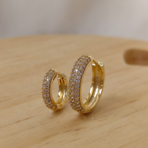 Brinco Fixo Reto Cravejado em Zircônias Banhado a Ouro 18k