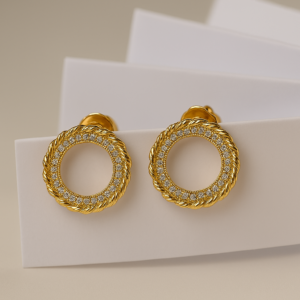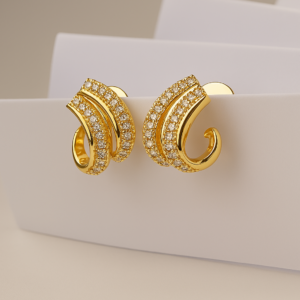 Brinco Fixo Argola Frontal com Torção e Cravejada em Zircônias Banhado a Ouro 18k