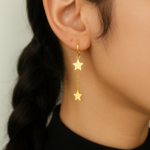 Brincos Argolinha Fechada com Pingente de Estrelas Banhado a Ouro 18k