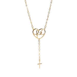 Colar “Fé” com Coração e Cruz banhado a Ouro 18k