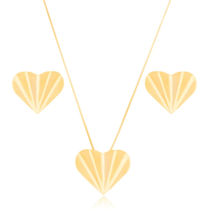 Conjunto Coração Diamante Banhado a Ouro 18k