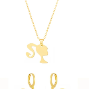 Conjunto Barbie com Argolinha com Pingente e Colar Banhado a Ouro 18k