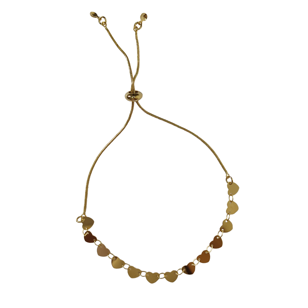Pulseira Regulável Chapinhas de Coração Banhada a Ouro 18k